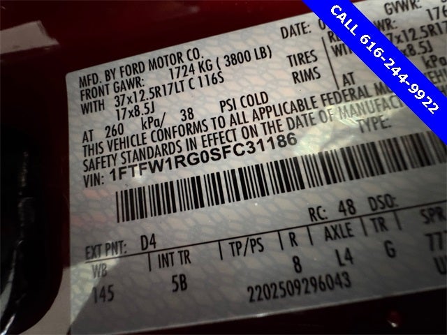 4WD 10-Speed Automatic 3.5L V6 EcoBoost 2025 Ford F-150 Raptor, 4WD, 14 Speakers, Carbon Fiber Interior Appliques, Dual Valve Shocks, Equipment Group 802A Raptor 37, Front dual zone A/C, Heads-Up Display, Heated front seats, Heated rear seats, Heated steering wheel, Lane Departure Warning System, Memory seat, Modular Front Bumper, Navigation system: Connected Navigation, Pedal memory, Power driver seat, RECARO Alcantara Suede Front Seats, Split folding rear seat, Wheels: Raptor 37 Unique 17 Cast Aluminum.
