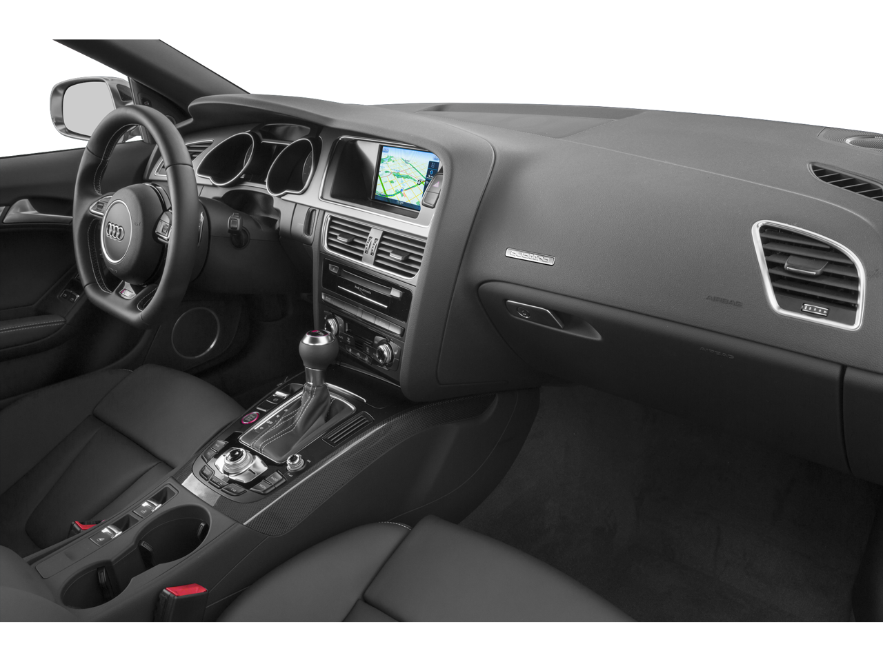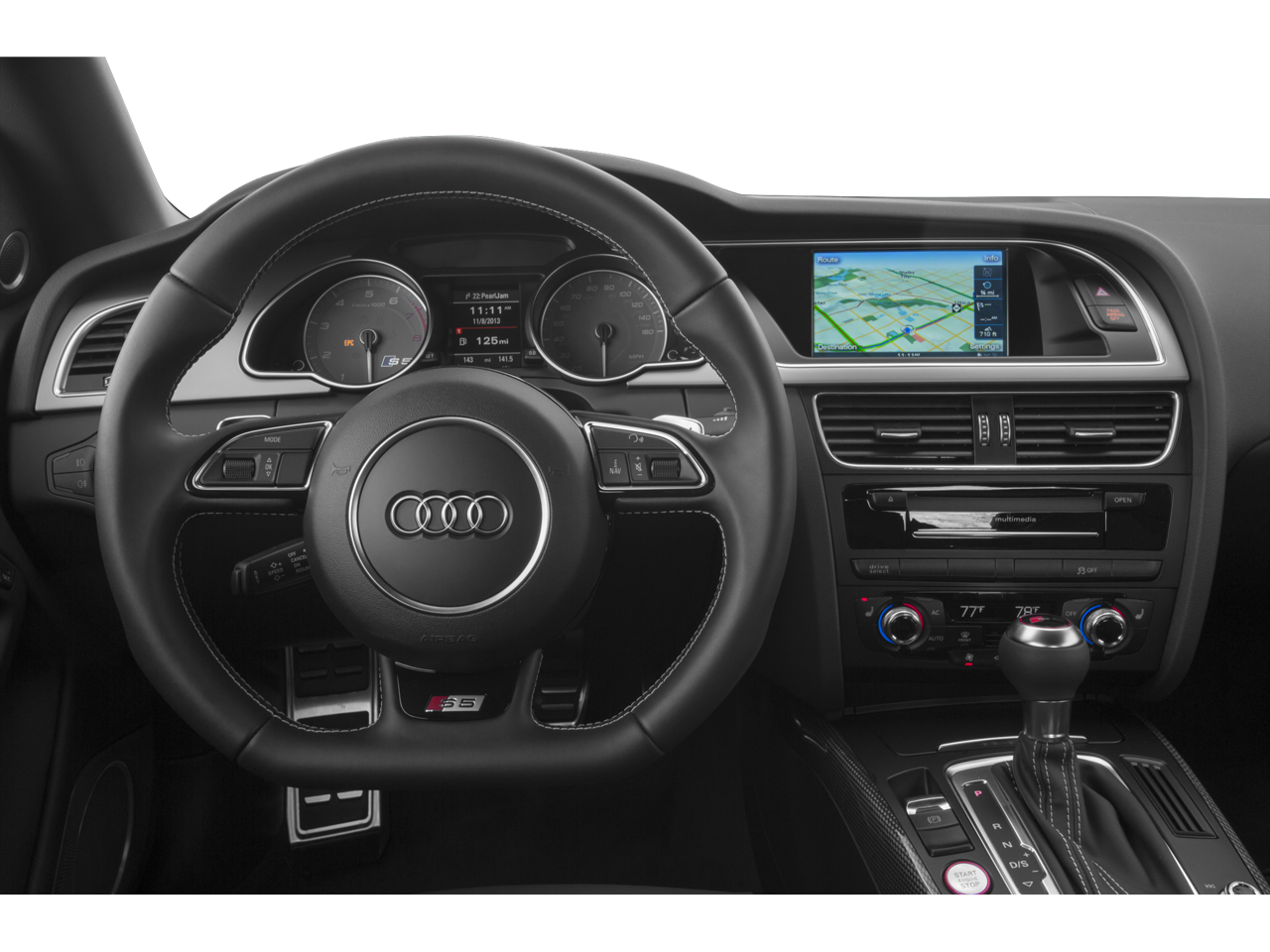 The interior of the S5 is a true sanctuary of refinement, with Fine Nappa Leather Seat Trim, Heated Front S Sport Seats, and a Sport Steering Wheel that provide both comfort and control. The cutting-edge Audi connect system, with its 7 color display and HDD Navigation, seamlessly integrates your digital world, while the premium Bang & Olufsen Sound System immerses you in a concert-hall experience.