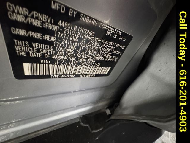 Alloy Wheel Package (17 Machine-Finished Alloy Wheels and Black Finish Roof Rails), Exterior Parking Camera Rear, Radio: Subaru Starlink 6.2 Multimedia System, Steering wheel mounted audio controls, 3.70 Axle Ratio, 4 Speakers, 4-Wheel Disc Brakes, ABS brakes, Air Conditioning, All-Weather Floor Mats, AM/FM radio, Auto-Dimming Mirror w/Compass, Brake assist, Bumpers: body-color, CD player, Cloth Upholstery, Driver door bin, Driver vanity mirror, Dual front impact airbags, Dual front side impact airbags, Electronic Stability Control, Emergency communication system: STARLINK, Four wheel independent suspension, Front anti-roll bar, Front Bucket Seats, Front Center Armrest, Front reading lights, Illuminated entry, Knee airbag, Low tire pressure warning, Occupant sensing airbag, Outside temperature display, Overhead airbag, Overhead console, Panic alarm, Passenger door bin, Passenger vanity mirror, Power door mirrors, Power steering, Power windows, Radio data system, Rear anti-roll bar, Rear Bumper Cover, Rear window defroster, Rear window wiper, Remote keyless entry, Security system, Speed control, Split folding rear seat, Tachometer, Telescoping steering wheel, Tilt steering wheel, Traction control, Trip computer, Variably intermittent wipers, and Wheels: 17 Steel w/Center Cap.