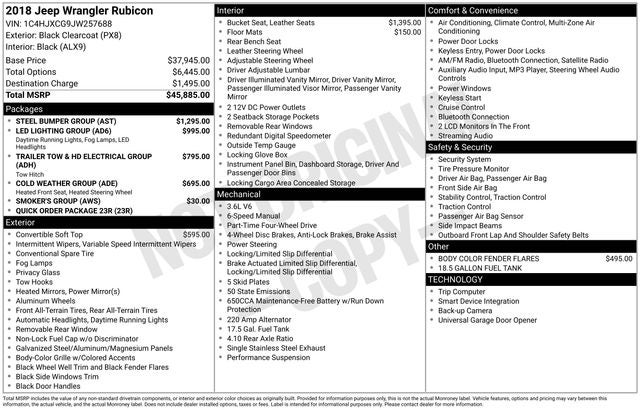 Whether you're conquering the trails or navigating the city streets, this 2018 Jeep Wrangler Rubicon is the perfect companion. Experience the unparalleled off-road prowess and premium amenities that make this Wrangler a true standout in its class.