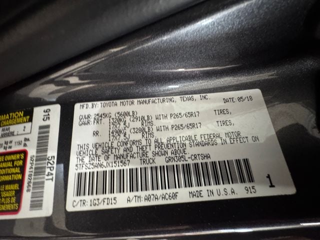 Gray 2018 Toyota Tacoma 3.5 Liter V6 4D Access Cab 4WD V6 4WD 6-Speed Automatic 3.5L V6 PDI DOHC 24V LEV3-ULEV70 278hp