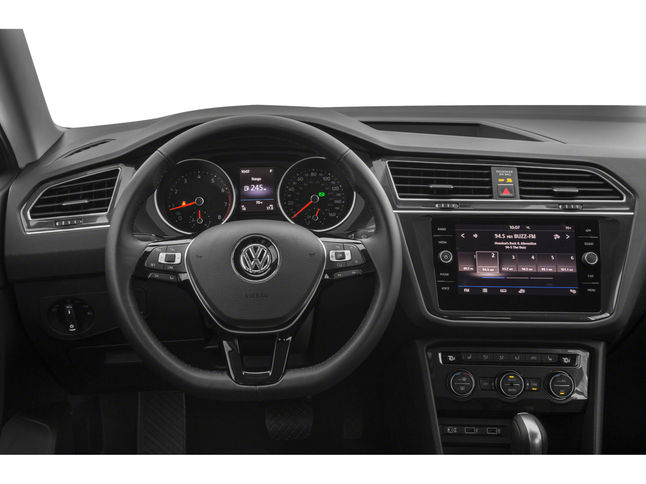 3.33 Axle Ratio, 3rd row seats: bench, 4-Wheel Disc Brakes, 6 Speakers, ABS brakes, Air Conditioning, Alloy wheels, AM/FM radio: SiriusXM, Automatic temperature control, Brake assist, Bumpers: body-color, Compass, Delay-off headlights, Driver door bin, Driver vanity mirror, Dual front impact airbags, Dual front side impact airbags, Electronic Stability Control, Emergency communication system: VW Car-Net, Exterior Parking Camera Rear, Four wheel independent suspension, Front anti-roll bar, Front Bucket Seats, Front Center Armrest, Front dual zone A/C, Front reading lights, Fully automatic headlights, Heated door mirrors, Heated Front Bucket Seats, Heated front seats, Illuminated entry, Leather Shift Knob, Low tire pressure warning, Occupant sensing airbag, Outside temperature display, Overhead airbag, Overhead console, Panic alarm, Passenger door bin, Passenger vanity mirror, Perforated V-Tex Leatherette Seating Surfaces, Power door mirrors, Power driver seat, Power steering, Power windows, Radio data system, Radio: AM/FM/HD/CD w/Dual USB & Aux-In, Rear anti-roll bar, Rear reading lights, Rear seat center armrest, Rear window defroster, Rear window wiper, Remote CD player, Remote keyless entry, Roof rack: rails only, Speed control, Speed-sensing steering, Split folding rear seat, Spoiler, Steering wheel mounted audio controls, Tachometer, Telescoping steering wheel, Tilt steering wheel, Traction control, Trip computer, Turn signal indicator mirrors, Variably intermittent wipers, and Wheels: 17 Tulsa.
