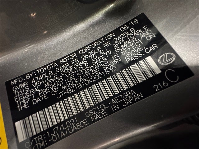 - Radio: Lexus Premium Sound System w/10 Speakers -inc: 7-inch Thin Film Transistor (TFT) LCD instrument panel display, aux and 3 USB (1 front, 2 rear) audio input plugs, Bluetooth® streaming audio, hands free phone and automatic phonebook download capabilities, CD player, HD Radio w/iTunes tagging (subscription free traffic and weather updates), integrated SiriusXM satellite radio receiver (complimentary 90-day trial subscription), remote touch interface controller w/back button, Lexus multimedia system w/8-inch color display and Scout GPS Link w/MapStream and TurnStream (complimentary for up to the first 3 years of ownership), Lexus Enform App Suite 2.0 Amazon Alexa compatible, Lexus Enform Wi-Fi (complimentary 4GB one-year trial included), Lexus Enform Remote app and Amazon Alexa compatibility (complimentary during first year of ownership), home screen divided into three customizable sections (HVAC, audio, traffic), voice command, Siri Eyes Free and Google voice control