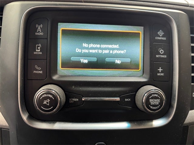 Popular Equipment Group (1-Yr SiriusXM Radio Service, 40/20/40 Split Bench Seat, Cloth 40/20/40 Bench Seat, For More Info, Call 800-643-2112, Front Armrest w/3 Cupholders, Manual Adjust Seats, No Satellite Coverage w/AK/HI, Rear Folding Seat, Remote Keyless Entry w/All-Secure, SiriusXM Satellite Radio, and Storage Tray), Protection Group (Tow Hooks), Quick Order Package 22B Tradesman, Tradesman Package, 17 x 7 Steel Wheels, 3.21 Rear Axle Ratio, 4-Wheel Disc Brakes, 6 Speakers, ABS brakes, Active Grille Shutters, Air Conditioning, AM/FM radio, Anti-Spin Differential Rear Axle, Auto-dimming Rear-View mirror, Black Exterior Mirrors, Black Tubular Side Steps, Brake assist, Center Hub, Delay-off headlights, Delete Under Rail Box Bedliner (DISC), Driver door bin, Dual front impact airbags, Dual front side impact airbags, Electronic Shift, Electronic Stability Control, Exterior Mirrors w/Heating Element, Front anti-roll bar, Front Center Armrest, Front License Plate Bracket, Front wheel independent suspension, Fully automatic headlights, GPS Antenna Input, Heated door mirrors, Heavy Duty Vinyl 40/20/40 Split Bench Seat, Low tire pressure warning, Manufacturer's Statement of Origin, Media Hub (USB, AUX), Occupant sensing airbag, Overhead airbag, Overhead Console, ParkView Rear Back-Up Camera, Passenger door bin, Power door mirrors, Power steering, Power windows, Radio data system, Radio: 3.0, Radio: Uconnect 3 w/5 Display, Rear anti-roll bar, Rear seat center armrest, Rear step bumper, Rear View Day/Night Mirror, Remote USB Port - Charge Only, Speed control, Tachometer, Temperature & Compass Gauge, Tilt steering wheel, Tip Start, Traction control, Variably intermittent wipers, and Voltmeter.