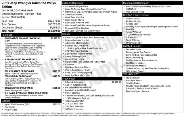 Discover the ultimate off-road companion in this 2021 Jeep Wrangler Unlimited Willys. Equipped with a powerful 2.0L I4 DOHC DI Turbo engine and an 8-speed automatic transmission, this Wrangler delivers exceptional performance both on and off the beaten path. The Willys trim level adds rugged style and capability, with features like a black grille, Willys decals, and a 4-wheel drive swing gate decal.