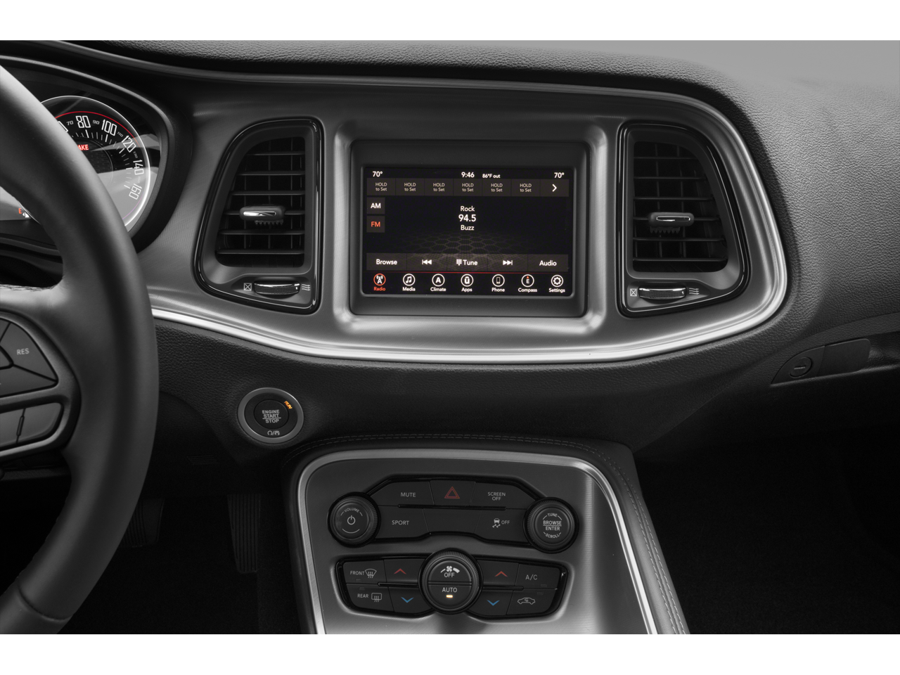 Blacktop Package (Black Fuel Filler Door, Black Grille w/Bezel, Challenger Blacktop Grille Badge, Gloss Black I/P Cluster Trim Rings, Leather Performance Steering Wheel, Rear Black Spoiler, Satin Black Dodge Tail Lamp Badge, and Wheels: 20 x 8.0 Black Noise Painted), Cold Weather Group (180 Amp Alternator, Heated Front Seats, and Heated Steering Wheel), Quick Order Package 2EA, 4-Wheel Disc Brakes, 6 Speakers, ABS brakes, Air Conditioning, Alloy wheels, AM/FM radio, Anti-whiplash front head restraints, Apple CarPlay, Apple CarPlay/Android Auto, Auto-dimming Rear-View mirror, Automatic temperature control, Blacktop Stripe, Brake assist, Bumpers: body-color, Compass, Compass Gauge, Delay-off headlights, Driver door bin, Driver vanity mirror, Dual front impact airbags, Dual front side impact airbags, Electronic Stability Control, Four wheel independent suspension, Front anti-roll bar, Front Bucket Seats, Front Center Armrest, Front dual zone A/C, Front reading lights, Fully automatic headlights, Google Android Auto, GPS Antenna Input, Heated door mirrors, Houndstooth Cloth Sport Seat, Illuminated entry, Integrated Center Stack Radio, Integrated Voice Command w/Bluetooth®, Leather Shift Knob, Low tire pressure warning, Media Hub (2 USB, AUX), Outside temperature display, Overhead airbag, Overhead console, Panic alarm, ParkView Rear Back-Up Camera, Passenger door bin, Passenger vanity mirror, Power door mirrors, Power driver seat, Power steering, Power windows, Radio data system, Radio: Uconnect 4 w/7 Display, Rear anti-roll bar, Rear reading lights, Rear seat center armrest, Rear window defroster, Remote keyless entry, Security system, Speed control, Speed-sensing steering, Split folding rear seat, Spoiler, Steering wheel mounted audio controls, Tachometer, Telescoping steering wheel, Tilt steering wheel, Traction control, Trip computer, USB Host Flip, Variably intermittent wipers, and Wheels: 18 x 7.5 Cast Aluminum.