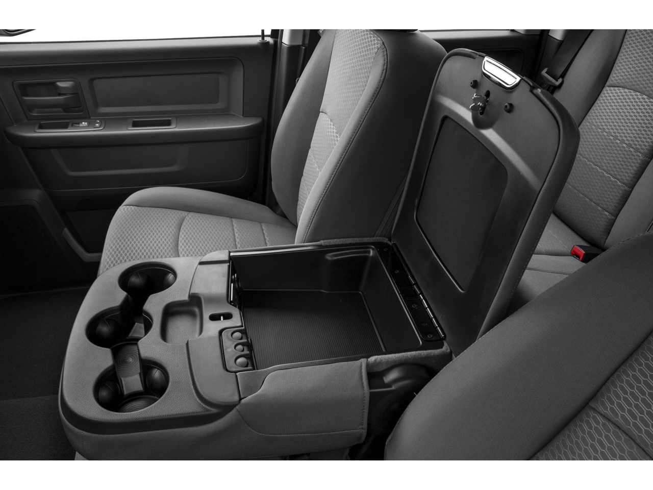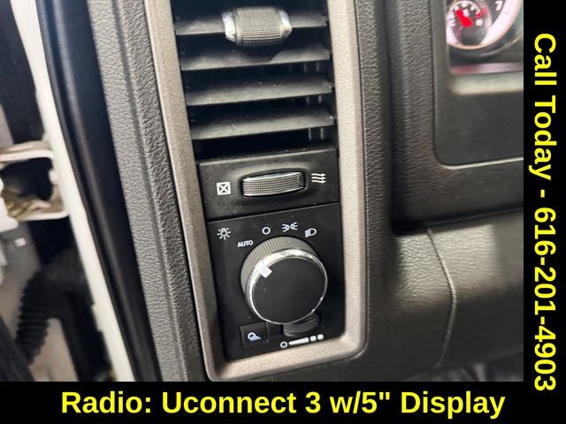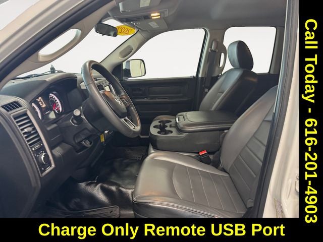 Quick Order Package 29B Tradesman, Tradesman Package, Trailer Tow Group (Black Exterior Mirrors, Class IV Receiver Hitch, Exterior Mirrors Courtesy Lamps, Exterior Mirrors w/Heating Element, Exterior Mirrors w/Supplemental Signals, Power Black Trailer Tow Mirrors, Trailer Brake Control, and Trailer Tow Mirrors), Brake assist, Charge Only Remote USB Port, Electronic Stability Control, ParkView Rear Back-Up Camera, Passenger door bin, Radio: Uconnect 3 w/5 Display, 17 x 7 Steel Wheels, 3.21 Rear Axle Ratio, 4-Wheel Disc Brakes, 40/20/40 Split Bench Seat, 6 Speakers, ABS brakes, Active Grille Shutters, Air Conditioning, AM/FM radio, Audio Input Jack for Mobile Devices, Center Hub, Compass, Delay-off headlights, Driver door bin, Dual front impact airbags, Dual front side impact airbags, Electronic Shift, Engine Calibration Flash, V2, Front anti-roll bar, Front Armrest w/3 Cupholders, Front Center Armrest, Front License Plate Bracket, Front wheel independent suspension, Fully automatic headlights, GPS Antenna Input, Heated door mirrors, Heavy Duty Vinyl 40/20/40 Split Bench Seat, Integrated Voice Command w/Bluetooth®, Low tire pressure warning, Manual Adjust Seats, MOPAR Spray In Bedliner, Occupant sensing airbag, Outside temperature display, Overhead airbag, Overhead console, ParkSense Rear Park Assist System, Power door mirrors, Power steering, Power windows, Radio data system, Rear anti-roll bar, Rear Folding Seat, Rear step bumper, Remote Keyless Entry w/All-Secure, Remote USB Port, Rotary Shifter-Black, Speed control, Tachometer, Tilt steering wheel, Tip Start, Traction control, Variably intermittent wipers, and Voltmeter.