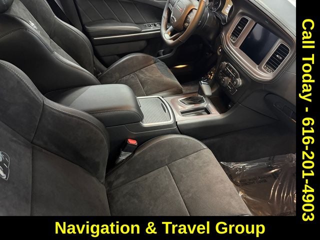 harman/kardon Audio Group (19 harman/kardon GreenEdge Speakers, harman/kardon GreenEdge Amp, and Surround Sound), Navigation & Travel Group (2-Piece Shark Fin Antenna, 4G LTE Wi-Fi Hot Spot, 8.4 Touchscreen Display, Apple CarPlay, Compass Gauge, For Details, Visit DriveUconnect.com, Google Android Auto, GPS Antenna Input, GPS Navigation, HD Radio, Integrated Center Stack Radio, Integrated Voice Command w/Bluetooth®, Media Hub (2 USB, AUX), Radio: Uconnect 4C Nav w/8.4 Display, SiriusXM Traffic Plus, SiriusXM Travel Link, and USB Host Flip), Plus Group (Auto Adjust In Reverse Exterior Mirrors, Auto-Dimming Exterior Driver Mirror, Black-Edged Premium Floormats, Blind Spot & Cross Path Detection, Blind Spot Memory/Power/Heat Mirror, Driver & Passenger Lower LED Lamps, Exterior Mirrors Courtesy Lamps, Exterior Mirrors w/Heating Element, Front Overhead LED Lighting, Heated Front Seats, Power 2-Way Driver Lumbar Adjust, Power 2-Way Passenger Lumbar Adjust, Power Front Driver/Passenger Seats, Power Tilt/Telescope Steering Column, Premium-Stitched Dash Panel, Radio/Driver Seat/Mirrors Memory, Rear Armrest w/Cupholder Seat, Scat Pack Logo Nappa/Alcantara Seat, and Ventilated Front Seats), Quick Order Package 21V Scat Pack Widebody (Adaptive Damping Suspension, All Speed Traction Control, Body Color Fender Flares, Brembo 6-Pot Fixed Front Caliper Brakes, Flat-Bottom Steering Wheel, Performance Shift Indicator, Wheels: 20 x 11 Carbon Black Aluminum, and Widebody Competition Suspension), Widebody Package, Technology Group (Adaptive Cruise Control w/Stop, Advanced Brake Assist, Auto High Beam Headlamp Control, Full Speed FWD Collision Warn Plus, Lane Departure Warning Plus, and Rain Sensitive Windshield Wipers), Charger R/T Scat Pack Widebody 6.4 Liter V8 SRT Hemi Sedan Automatic, Heated steeri