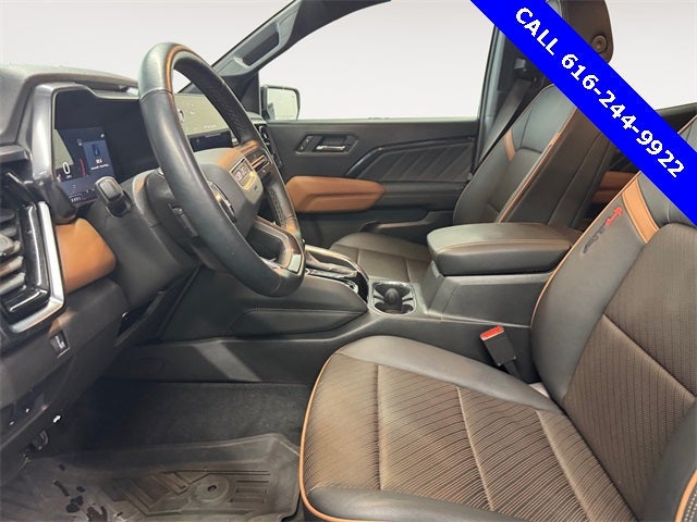 AT4 Premium Package (6-Way Power Passenger Seat Adjuster, Driver & Front Passenger Ventilated Seats, Driver Memory, Driver Seatback Map Pocket, Heated Steering Wheel, Perforated Leather-Appointed Seat Trim, Power Passenger Lumbar Control Seat Adjuster, Rear Center Fold-Down Armrest w/2 Cupholders, and Wireless Charging), Canyon Safety Plus Package (Rear Cross Traffic Braking and Ultrasonic Rear Park Assist), Preferred Equipment Group 4SG (120-Volt Bed Mounted Power Outlet, 2 Rear USB Ports in Center Console (Charge-Only), 8-Way Power Driver Seat Adjuster, Automatic Emergency Braking, Automatic Locking Rear Differential, Canyon Pro Safety, Driver & Front Passenger Illuminated Visors, Dual-Zone Automatic Air Conditioning, EZ-Lift & Lower Tailgate, Following Distance Indicator, Forward Collision Alert, Front LED Fog Lamps, Front Pedestrian & Bicyclist Braking, Heated Driver & Front Passenger Seats, Heated Power-Adjustable Outside Mirrors, Inside Rear-View Auto-Dimming Mirror, IntelliBeam Automatic High Beam On/Off, Interior Overhead Courtesy Light w/Dual Reading Lamp, Lane Keep Assist w/Lane Departure Warning, Manual Rear-Sliding Window, MultiStow Tailgate, Power Driver Lumbar Control Seat Adjuster, Rear of Console 120-Volt Power Outlet, Rear-Window Electric Defogger, Remote Vehicle Starter System, Tailgate Keyed Cylinder Lock, and Tilt & Telescopic Manual Steering Column), ProGrade Trailering System (Trailering App System), Skid Plate Package (LPO), Technology Plus Package (Adaptive Cruise Control, HD Surround Vision, Multicolor 6.3 Diagonal Head-Up Display, and Rear Pedestrian Alert), Trailering Package (Integrated Trailer Brake Controller), 4WD, 1st & 2nd Rows All-Weather Floor Liner (LPO), 2 1st Row USB Charge/Data Ports, 220 Amps Alternator, 3.42 Rear Axle Ratio, 4-Way Manual Front Passenger Seat Adjuster, 4-Wheel Disc Brakes, 6 Speakers, 6-Speaker Audio System Feature, ABS brakes, Air Conditioning, Alloy wheels, AM/FM radio, Apple CarPlay/Android Auto, Auto High-beam Headlights, Auto-dimming Rear-View mirror, Automatic Stop/Start, Automatic temperature control, Bedliner w/Integral Storage Compartments (LPO), Blind Zone Steering Assist w/Trailering, Brake assist, Bumpers: body-color, Cargo Tie-Down Rings (Set of 4) (LPO), Cloth/CoreTec Seat Trim, Compass, Delay-off headlights, Driver door bin, Driver Mode Selector, Driver vanity mirror, Dual front impact airbags, Dual front side impact airbags, Electronic Stability Control, Front anti-roll bar, Front Bucket Seats, Front Center Armrest, Front dual zone A/C, Front fog lights, Front License Plate Kit, Front Passenger Seatback Map Pocket, Front reading lights, Front wheel independent suspension, Heated door mirrors, Heated front seats, Illuminated entry, Low tire pressure warning, Navigation System, Occupant sensing airbag, Outside temperature display, Overhead airbag, Overhead console, Panic alarm, Passenger door bin, Passenger vanity mirror, Power door mirrors, Power driver seat, Power steering, Power windows, Premium 7-Speaker Bose Sound System, Radio data system, Radio: 11.3 Diagonal Premium GMC Infotainment Sys, Rear reading lights, Rear step bumper, Rear window defroster, Remote keyless entry, Security system, SiriusXM w/360L, Speed control, Speed-sensing steering, Split folding rear seat, Steering wheel mounted audio controls, Stop/Start System Disable Button Engine Control, Tachometer, Telescoping steering wheel, Tilt steering wheel, Traction control, Trip computer, Variably intermittent wipers, Wheels: 18 x 8.5 Dark Gray Machined Finish Alum, and Wireless Apple CarPlay