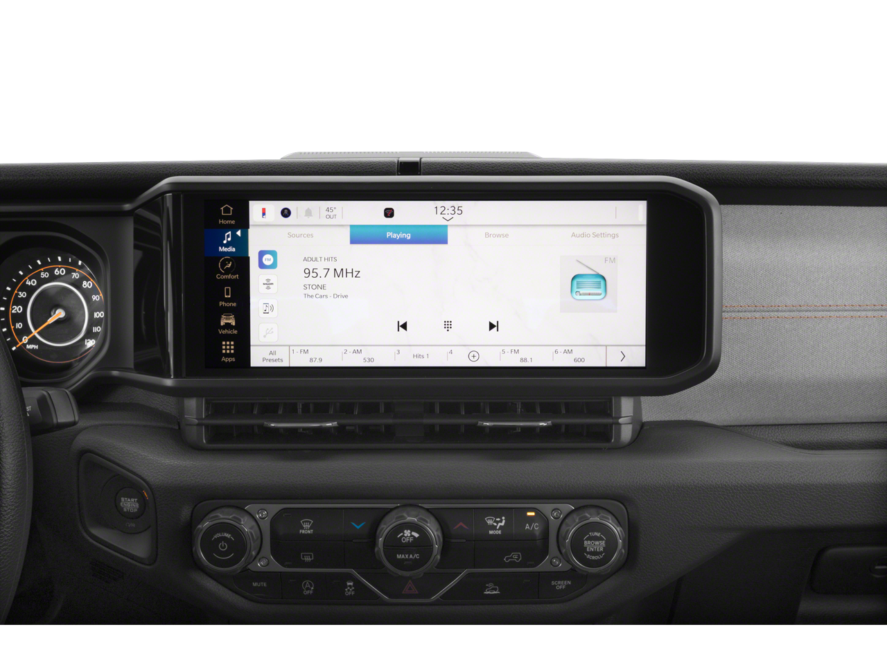 Inside, the Gladiator offers a spacious and well-appointed cabin with comfortable cloth seats, a premium wrapped steering wheel, and a large 7-inch driver information display. Convenience features like remote start, heated front seats, and a heated steering wheel ensure you'll stay comfortable in any weather.