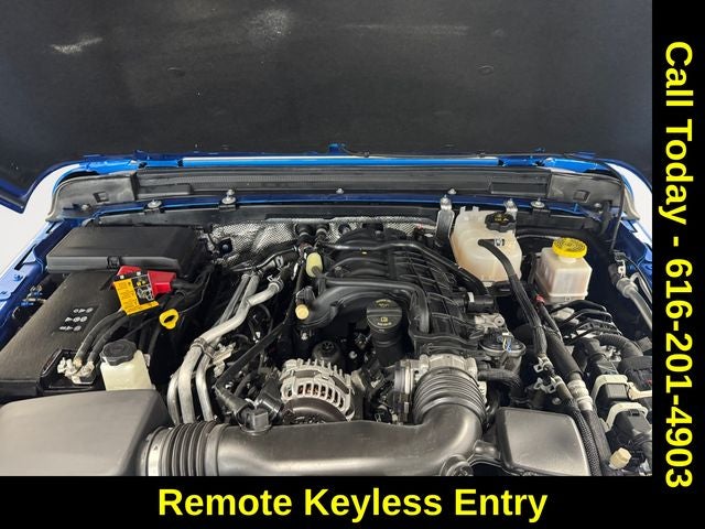 Convenience Group (Air Conditioning w/Auto Temperature Control, Cluster 7.0 TFT Color Display, Corning Gorilla Glass, Emergency/Assistance Call, Front Door Locks 2-Door Passive Entry, Heated Front Seats, Heated Steering Wheel, Remote Start System, and Universal Garage Door Opener), Quick Order Package 24W Willys (240 Amp Alternator, 4-Wheel Drive Decal, 97 MPH Vehicle Max Speed Calibration, Advanced Brake Assist, Automatic Headlamps, Auxiliary Switches, Black Grille, Body Color Fender Flares (2-Piece), Class IV Receiver Hitch, Daytime Running Lamps LED Accents, Deep Tint Sunscreen Windows, E-Locker Rear Axle, Enhanced Adaptive Cruise Control, Front 1-Touch Down Power Windows, Front Heavy Duty Red Accent Shock Absorbers, Front LED Fog Lamps, Full Speed Forward Collision Warning Plus, Heavy-Duty Engine Cooling, LED Premium Reflector Headlamps, LED Taillamps, Mold In Color Bumper w/Gloss Black, MOPAR All-Weather Slush Mats, Off-Road Plus Mode, Power Heated Mirrors, Power Tailgate Lock, Premium Wrapped Steering Wheel, Protection Sill Rails, Rear Heavy Duty Red Accent Shock Absorbers, Remote Keyless Entry, Security Alarm, Speed Sensitive Power Locks, Sun Visors w/Illuminated Vanity Mirrors, Trailer Hitch Zoom, Wheels: 17 x 7.5 Painted Black, Willy's Suspension, and Willys Hood Decal), Hydro Blue Pearlcoat, Radio: Uconnect 5 w/12.3 Display, 110 MPH Vehicle Max Speed Calibration, 12.3 Touchscreen Display, 3.73 Rear Axle Ratio, 4-Wheel Disc Brakes, 4G LTE Wi-Fi Hot Spot, 8 Speakers, ABS brakes, Air Conditioning, Alexa Built-In, AM/FM radio: SiriusXM with 360L, Apple CarPlay, Apple CarPlay/Android Auto, Brake assist, Cloth Low-Back Bucket Seats, Compass, Connectivity - US/Canada, Delay-off headlights, Disassociated Touchscreen Display, Driver door bin, Driver vanity mirror, Dual front impact airbags, Dual front side impact airbags, Electronic Stability Control, Emergency communication system: Jeep Connect, Front anti-roll bar, Front Bucket Seats, Front Center Armrest w/Storage, Front fog lights, Front reading lights, Google Android Auto, Integrated Center Stack Radio, Integrated roll-o