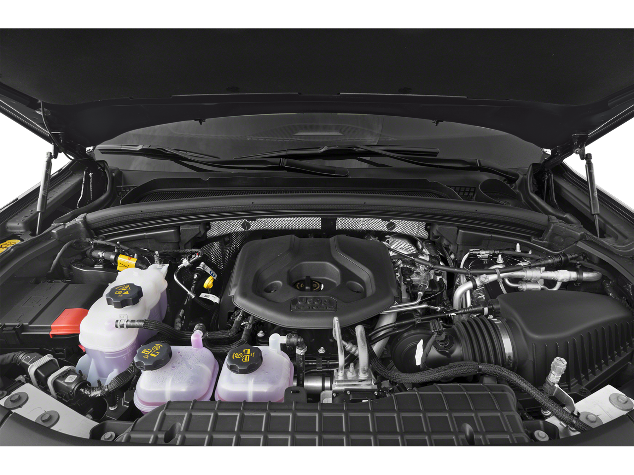 Luxury Tech Group II (2nd-Row Manual Window Shades, Auto-Dimming Exterior Driver Mirror, Capri Leatherette with Axis II Seats, Integrated Off-Road Camera, Intersection Collision Assist System, Memory Steering Column, ParkSense Front/Rear Park Assist with Stop, Passive Entry - Front/Rear Doors, Liftgate, Power Tilt/Telescope Steering Column, Rain Sensitive Windshield Wipers, Rear Back Up Camera Washer, Rearview Autodim Digital Display Mirror, Surround View Camera System, Ventilated Front Seats, and Wireless Charging Pad), Quick Order Package 27F, 10 Speakers, 3.70 Rear Axle Ratio, 4-Wheel Disc Brakes, ABS brakes, Air Conditioning, Alloy wheels, AM/FM radio: SiriusXM with 360L, Anti-whiplash front head restraints, Audio memory, Auto High-beam Headlights, Automatic temperature control, Brake assist, Bumpers: body-color, Capri Leatherette Seats, Compass, Delay-off headlights, Driver door bin, Driver vanity mirror, Dual front impact airbags, Dual front side impact airbags, Electronic Stability Control, Four wheel independent suspension, Front anti-roll bar, Front Bucket Seats, Front Center Armrest w/Storage, Front dual zone A/C, Front fog lights, Front License Plate Bracket, Front reading lights, Fully automatic headlights, Garage door transmitter, Heated door mirrors, Heated front seats, Heated rear seats, Heated steering wheel, Heavy Duty Suspension, Illuminated entry, Knee airbag, Low tire pressure warning, Memory seat, Model Year Tracking, Navigation System, Occupant sensing airbag, Outside temperature display, Overhead airbag, Overhead console, Panic alarm, ParkView Rear Back-Up Camera, Passenger door bin, Passenger vanity mirror, Power door mirrors, Power driver seat, Power Liftgate, Power moonroof, Power passenger seat, Power steering, Power windows, Radio data system, Radio: Uconnect 5 Nav with 10.1 Display, Rear anti-roll bar, Rear reading lights, Rear window defroster, Rear window wiper, Remote keyless entry, Security system, Speed control, Speed-Sensitive Wipers, Split folding rear seat, Spoiler, Steering wheel mounted audio controls, Tachometer, Telescoping steering wheel, Tilt steering wheel, Traction control, Trip computer, Turn signal indicator mirrors, Variably intermittent wipers, Voltmeter, and Wheels: 18 x 8 Fully Painted Aluminum.