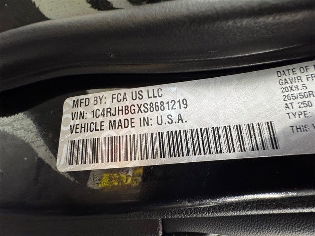 Black Appearance Package (Gloss Black Exterior Accents and Wheels: 20 x 8.5 Gloss Black Painted Aluminum), 4-Wheel Disc Brakes, 6 Speakers, ABS brakes, Active Noise Control System, Air Conditioning, Alloy wheels, AM/FM radio: SiriusXM with 360L, Anti-whiplash front head restraints, Audio memory, Auto High-beam Headlights, Automatic temperature control, Brake assist, Bumpers: body-color, Capri Leatherette Seats, Compass, Delay-off headlights, Driver door bin, Driver vanity mirror, Dual front impact airbags, Dual front side impact airbags, Electronic Stability Control, Emergency communication system, Four wheel independent suspension, Front anti-roll bar, Front Bucket Seats, Front Center Armrest w/Storage, Front dual zone A/C, Front fog lights, Front reading lights, Fully automatic headlights, Garage door transmitter, Heated door mirrors, Heated front seats, Heated rear seats, Heated steering wheel, Illuminated entry, Knee airbag, Low tire pressure warning, Memory seat, Model Year Tracking, Navigation System, Normal Duty Suspension, Occupant sensing airbag, Outside temperature display, Overhead airbag, Overhead console, Panic alarm, ParkView Rear Back-Up Camera, Passenger door bin, Passenger vanity mirror, Power door mirrors, Power driver seat, Power Liftgate, Power passenger seat, Power steering, Power windows, Radio data system, Rear anti-roll bar, Rear reading lights, Rear window defroster, Rear window wiper, Remote keyless entry, Security system, Speed control, Speed-Sensitive Wipers, Split folding rear seat, Spoiler, Steering wheel mounted audio controls, Tachometer, Telescoping steering wheel, Tilt steering wheel, Traction control, Trip computer, Turn signal indicator mirrors, Variably intermittent wipers, Voltmeter, and Wheels: 18 x 8 Polished/Painted Aluminum.