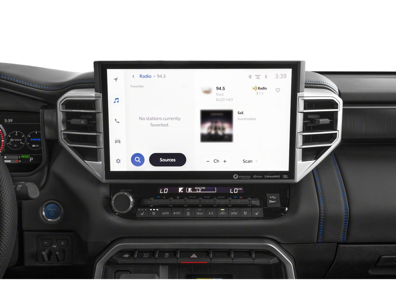 - Radio: 14" Toyota Audio Multimedia w/JBL Prem Aud -inc: touchscreen, 14 JBL speakers (including subwoofer and amplifier), wireless Android Auto and Apple CarPlay compatibility, SiriusXM w/3-month Platinum Plan trial subscription, Connected Services - Safety Connect w/up to 10-year trial subscription, Remote Connect w/1-year trial, Drive Connect w/1-year trial, Service Connect w/up to 10-year trial and Wi-Fi Connect w/up to 3GB within 1-month trial, See toyota.com/audio-multimedia and toyota.com/connected-services for details