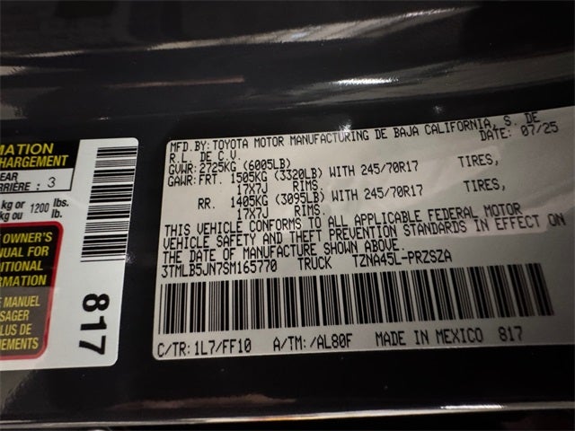 - Front Tire Size: P245/70TR17